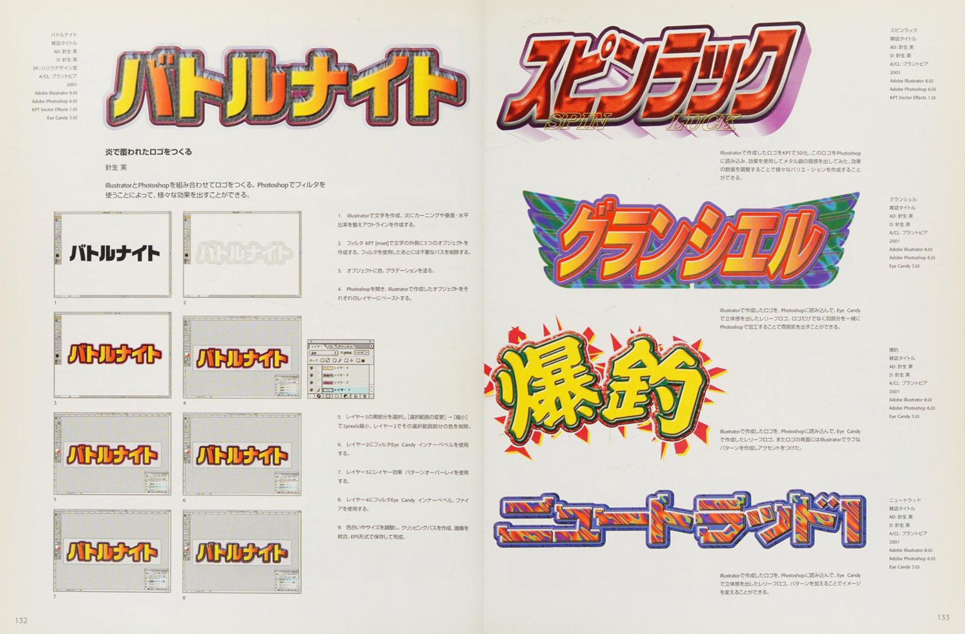 The designers working on these projects — mostly in Japan, using tools like Strata Studio Pro, KPT Vector Effects, and 3D Studio Max alongside Illustrator — were solving real visual communication problems under serious technical constraints.