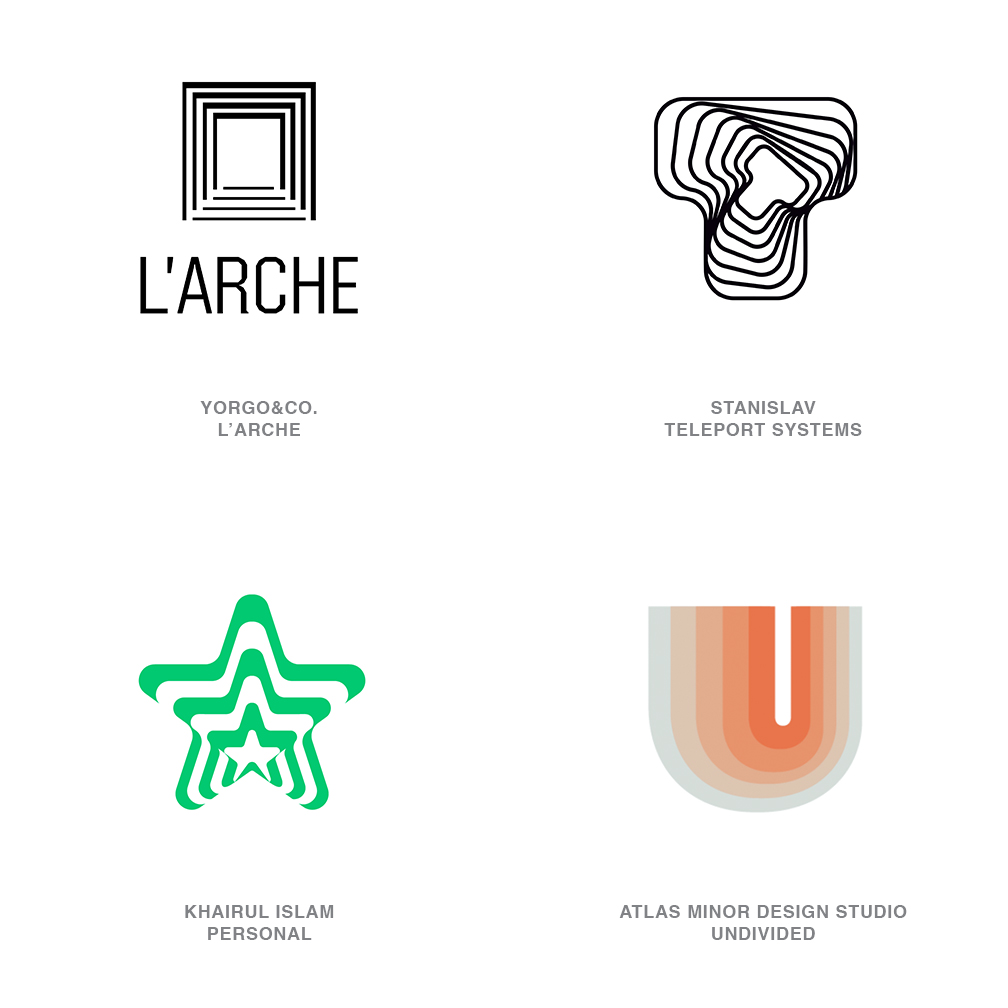 "Passages" logos create a sense of depth—pathways, doorways, tunnels, layered planes that imply you could move through the mark. The visual trick here is controlled perspective or overlap sequencing.
