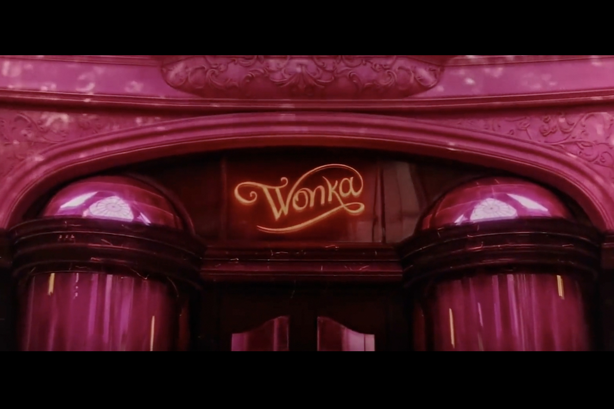 The Wonka logo was designed to live on a cinema screen — enormous, backlit, surrounded by darkness. This is a very different context from a business card, a storefront sign, or a social media avatar.